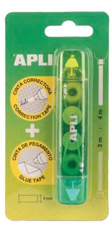 Korekčný a lepiaci roller, 2in1, 5 mm x 4-3 m, APLI , mix farieb