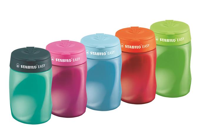 Strúhadlo, trojdierkové, so zásobníkom, pre pravákov, STABILO "Easy", zelené