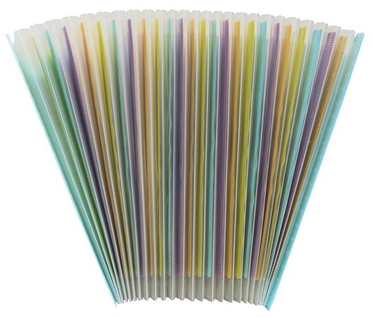 na uchovávanie dokumentov formátu A4 - kapacita: 800 listov (80 g/m2) -materiál: PP s certifikátom Blue Angel - pružný, odolný, z polypropylénového materiálu -vyhotovenie s registrom, s možnosťou popisu na štítkoch - 24 priehradiek - reliefovaný povrch, vo vnútri priehradky rôznych farieb - rozmery: 330 x 235 x 250 mm -s úchytmi na oboch stranách