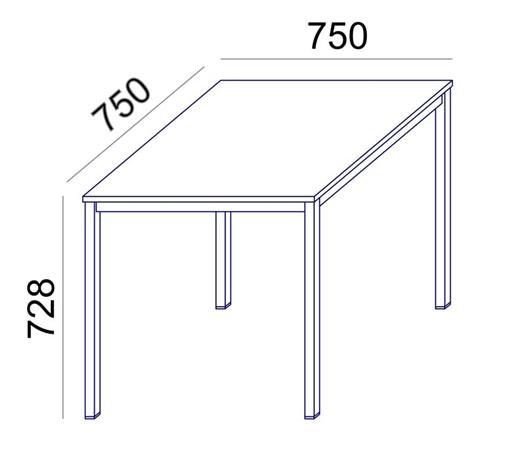 rozmery: 75x75 cmfarba: bielavýška: 72,8 cmklasické stoly na všeobecné použitie (do kancelárie, kuchynky, jedálne)stolová doska z 18 mm hrubej nábytkovej doskysivé, hranaté kovové nohyhrúbka nôh: 30x30 mm