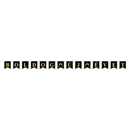Nápis, 200 cm, "Šťastný Nový rok", čierna-zlatá