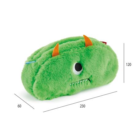 Chlpatá taštička na doplnky "Monster", obojstranná, APLI Back2Fun: zapínanie na zips, materiál: mäkký, chlpatý polyester s vyšívanými detailmi, rozmery: 230 x 1120 x 60 mm, farba: modrá/zelená