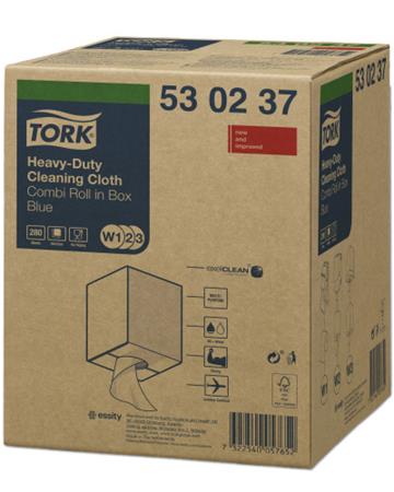 Tork Heavy-Duty viacúčelová čistiaca utierka je vysoko absorpčná, hrubá a veľmi odolná, pričom vydrží silné utieranie bez toho, aby sa rozpadla. Možno ju použiť s väčšinou rozpúšťadiel, pričom rýchlo a účinne odstraňuje olej, mastnotu, vodu a odolné škvrny, zároveň chráni ruky pred vysokou teplotou a poškriabaním o kovové predmety. Túto utierku možno použiť v Tork stojanových zásobníkoch na podlahu či na stenu, ktoré sú vyvinuté na bezpečnosť a účinnosť, prípadne v Tork maxi zásobníkoch so stredovým odvíjaním alebo zásobníkoch na kombi kotúč v boxe, ktoré sú vyvinuté na dávkovanie jednou rukou.