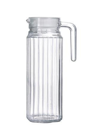 Praktický sklenený džbán optimálnej veľkosti, ktorý je možné uzavrieť farebným plastovým vekom.