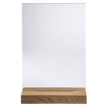 Ideálny na vystavenie fotografií, informácií, jedálnych lístkov či ponúk na stole. -vyrobený z kvalitného akrylu  zvislá (stojatá) orientácia -priehľadný -podstavec z dreva -obojstranný -rozmery: 210 x 50 x 330 mm -odolný voči UV žiareniu