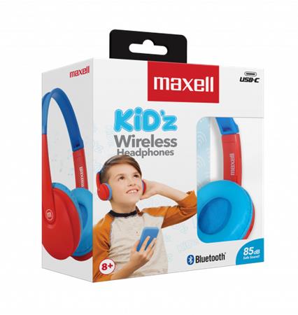 Náhlavné slúchadlá, detský rozmer, bezdrôtové, Bluetooth, s mikrofónom, MAXELL "HP-BT350", modrá-červená
