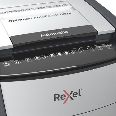 Skartovací stroj, konfety, 600 listov, REXEL, "Optimum AutoFeed+ 600X"