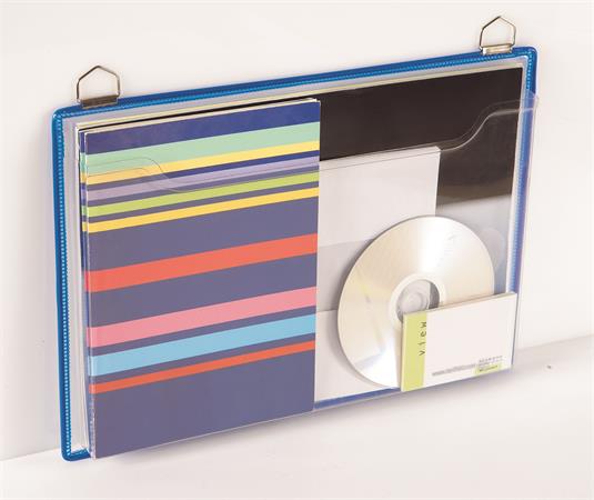 Držiak na prospekty, s kovovými úchytmi, závesný,  A4, na šírku, DJOIS, modrá