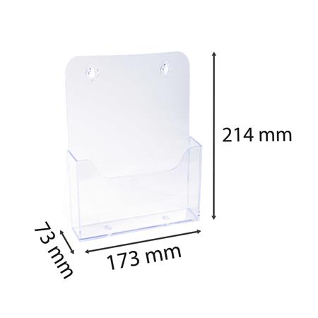 -ideálny doplnok na recepciu, do show roomov alebo čakarní  -plast-1 priečinok -k stojatým dokumentom formátu A5 -farba: priehľadná -hĺbka priečinku: 28 mm -rozmery: 73 x 214 x 173 mm (š x v x d)