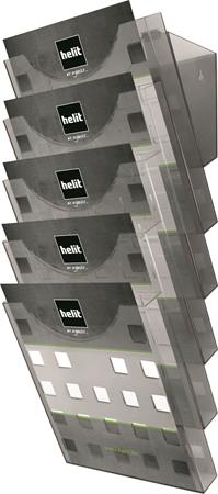 výnimočný dizaj, prémiová kvalita, sada obsahuje: 5x INH61025 (A4 stojan na prospekty) a 1x INH61030 (doplnok k nástenným stojanom); rozmery: 241 x 150 x 578 mm (A4, nástenné/stolové prevedenie); farba: priesvitná sivá; dá sa rozšíriť (o komponenty INH61025  INH61026); hĺbka otvoru: 31 mm